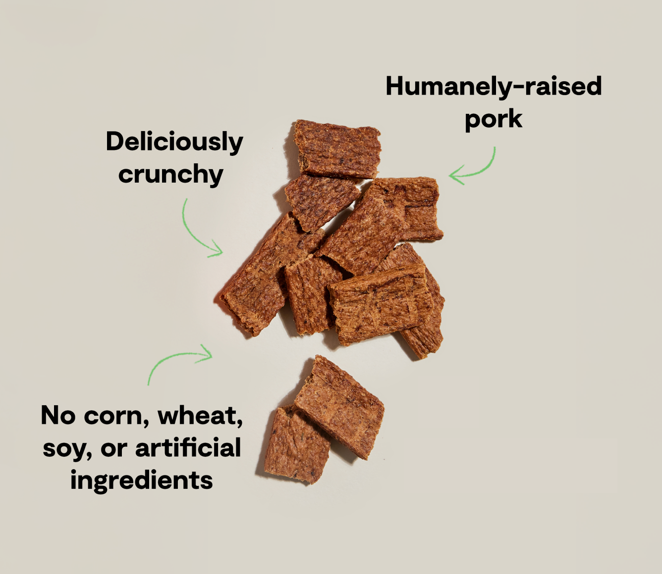 Our passion to Do Some Good® for animals and the planet translates to knowing your pet is getting the best nutrition possible at every meal — and every snack time! We apply the same principles and care to crafting our treats as we do to making recipes for your pup. That means making our treats with animal welfare-certified meats raised without antibiotics or added hormones, sustainable seafood, non-GMO fruits and veggies, and more. We never use carrageenan, corn, wheat, soy, artificial flavors, colors, or preservatives.