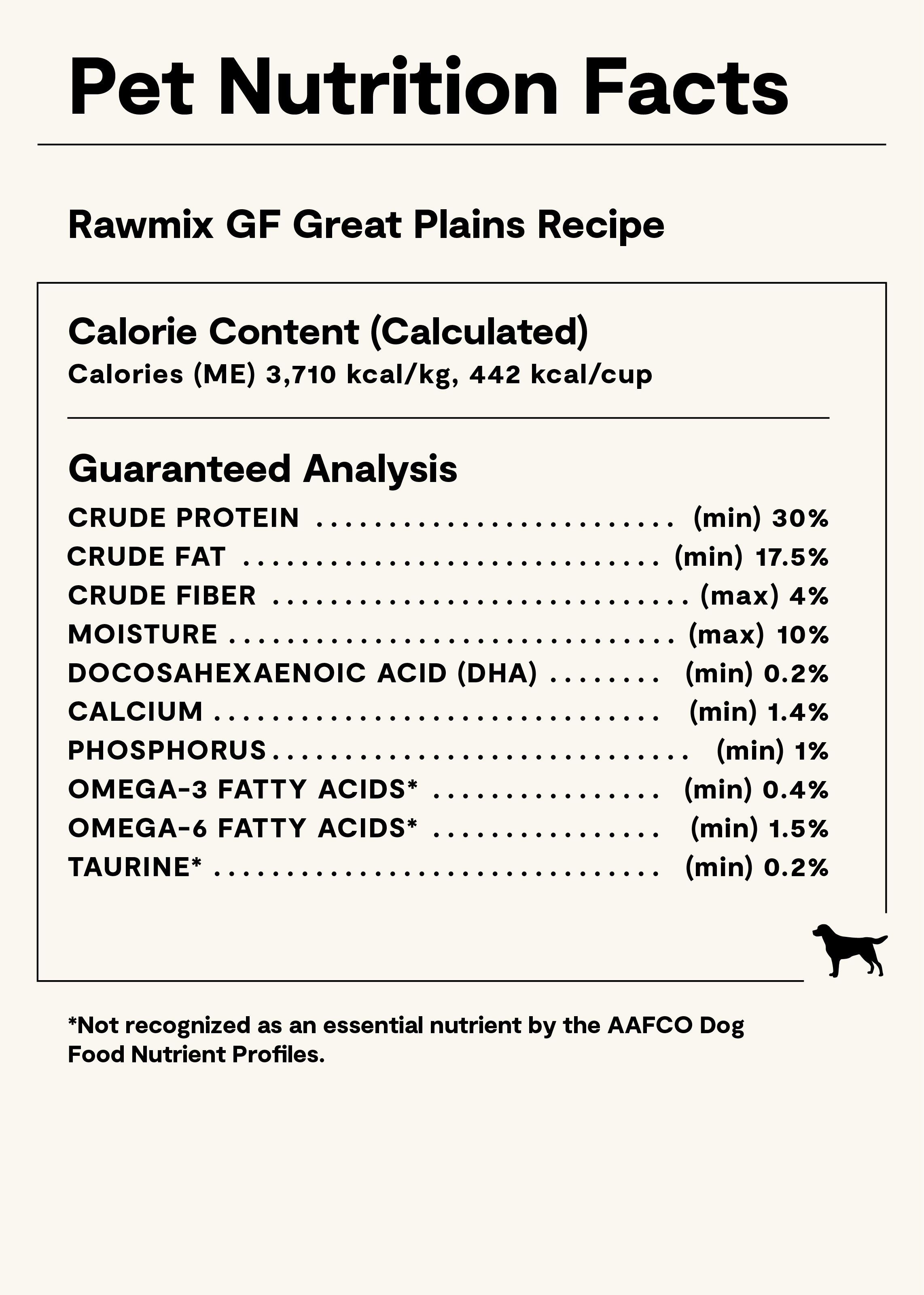 Calling all meat lovers! RawMix packs a protein punch with multi-protein blends of bone broth and freeze coated kibble, boosted with bonus chunks of freeze dried raw. Ancestral nutrition inspired by the wild, this complete and balanced meal is offered in both grain- and legume-free and ancient grain options. Dedicated formulas for large breeds are available.